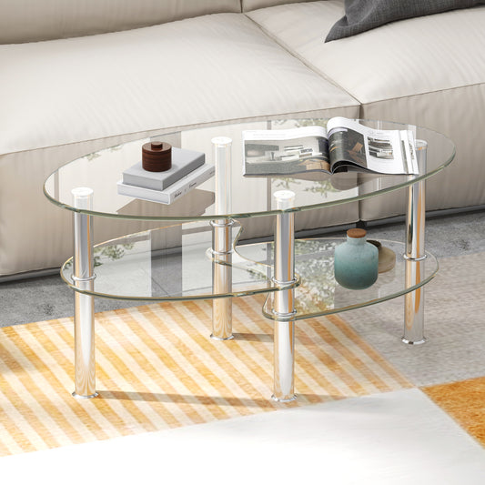 3-Tiers Tempered Glass Coffee Tables with 2 Shelves-Transparent