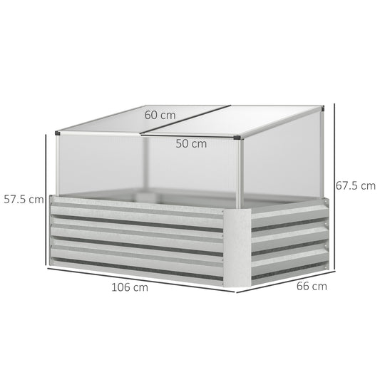 Outsunny Raised Beds for Garden with Mini Greenhouse, Galvanised Outdoor Planters and Cold Grame, for Herbs and Vegetables