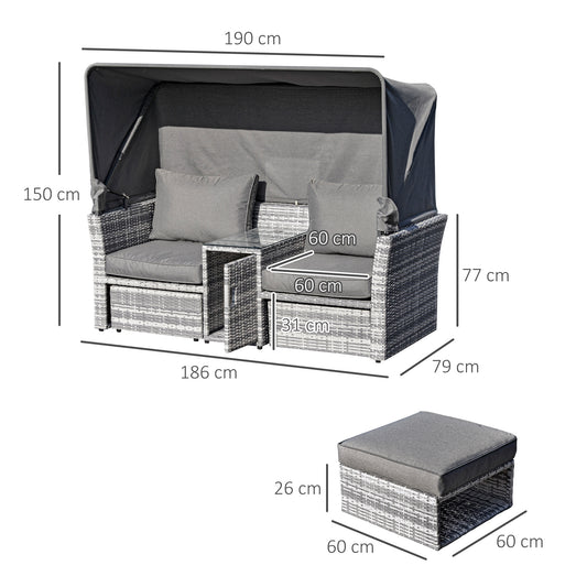 Outsunny 3 Pieces Outdoor PE Rattan Patio Furniture Set Daybed 2-Seater Sofa Footstool Tempered Glass Coffee Table Conversation Set, Olefin Cushion