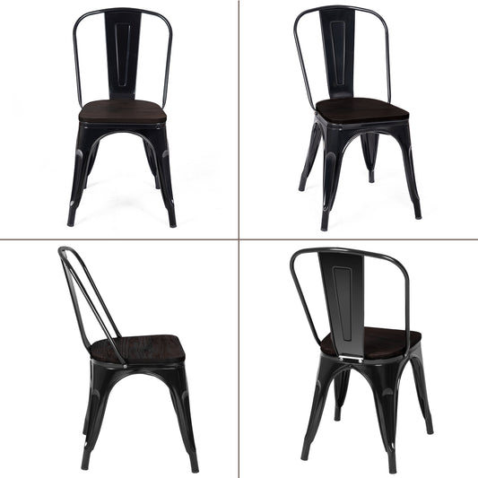 Set of 4 Stackable Metal Dining Chairs with Iron Backrest-Black