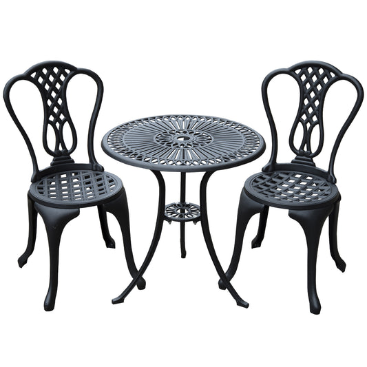 Outsunny 3 Piece Patio Cast Aluminium Bistro Set Garden Outdoor Furniture Table and Chairs Shabby Chic Style