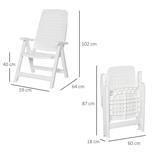 Outsunny Set of 2 Folding Plastic Dining Chairs with 4-Position Backrest, Reclining Armchairs for Indoor & Outdoor Events, Camping, White