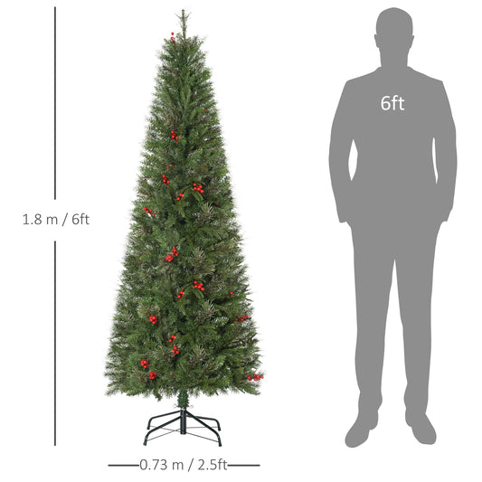 HOMCOM Pencil Artificial Christmas Tree with Realistic Branches, Red Berries, Auto Open, Green
