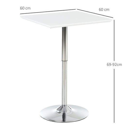HOMCOM Square Height Adjustable Bar Table Counter Pub Desk with Metal Base for Home Bar, Dining Room, Kitchen, White