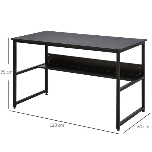 HOMCOM Computer Desk with Storage Shelf Adjustable Feet Metal Frame Home Office Laptop Study Writing Workstation Table Black