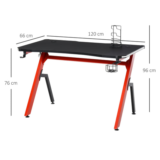 HOMCOM Gaming Desk Computer Table Stable Metal Frame Adjustable Feet with Cup Holder Headphone Hook, Cable Basket - Red