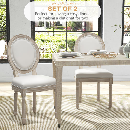 HOMCOM Dining Chairs Set of 2, French Vintage Style Kitchen Chairs with PU Leather Upholstery and Wooden Legs for Dining Room