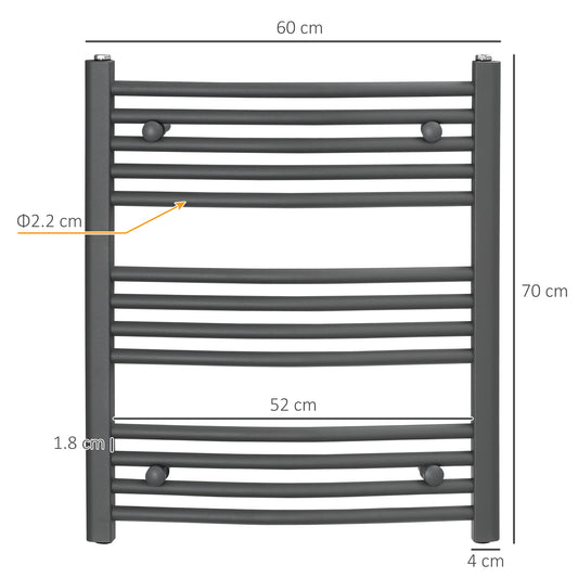 HOMCOM Straight Heated Towel Rail, Hydronic Bathroom Ladder Radiator Towel Warmer For Central Heating 600mm x 700mm, Grey