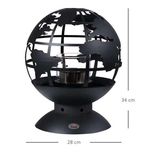 HOMCOM Globe Shape Tabletop Fireplace, Portable Metal Bioethanol Fireplace with Lid and 0.4L Tank, 1.5 Hour Burning Time for Liquid Alcohol, Black
