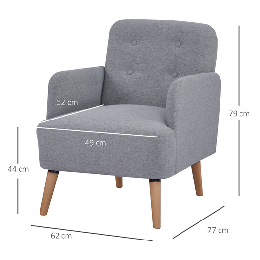 HOMCOM Upholstered Armchair, Nature Wood Frame Living Room Chairs with Birch Wood Legs & Thick Padding Seat and Button Mid-Back, Light Grey