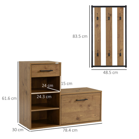 HOMCOM Coat Rack with Shoe Bench Set, Hall Tree, Hallway Set with 6 Hooks, Drawer and Storage Cabinet, Black and Natural