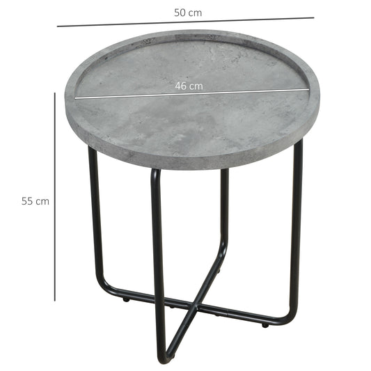 HOMCOM Round End Table, Modern Accent Side Table with Cement Effect Tabletop and Metal Frame for Living Room