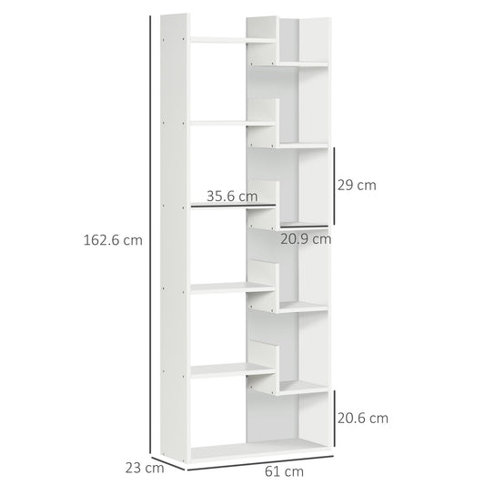 HOMCOM 6-Tier Bookshelf, Modern Bookcase with 11 Open Shelves, Freestanding Decorative Storage Shelving for Home Office and Study, White