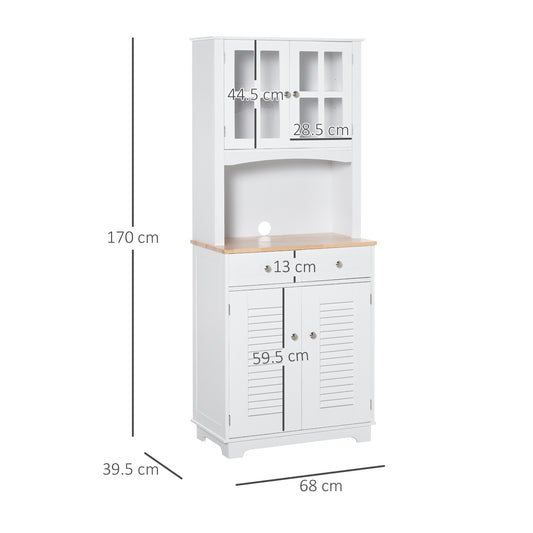 HOMCOM Modern Kitchen Cupboard, Louvered Kitchen Storage Cabinet with Framed Glass Doors and 2 Drawers, White