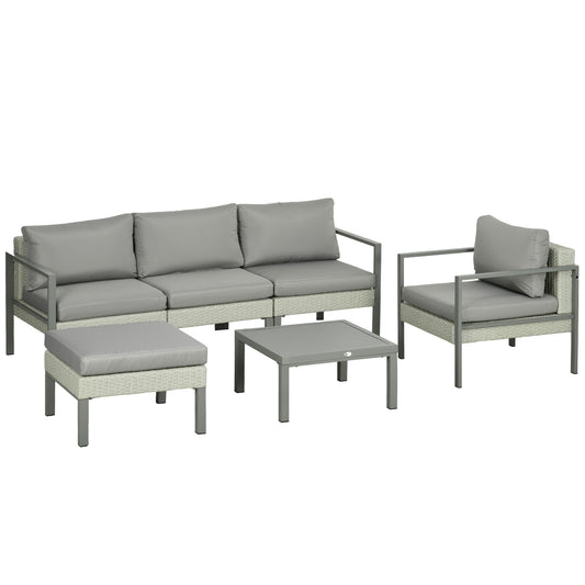 Outsunny Six-Piece Rattan Garden Sofa Set - Light Grey