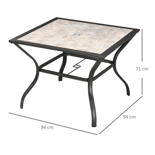 Outsunny Garden Table with Parasol Hole, Outdoor Dining Garden Table for 4, Square Patio Table with PC Board Tabletop for Patio, Backyard, Grey