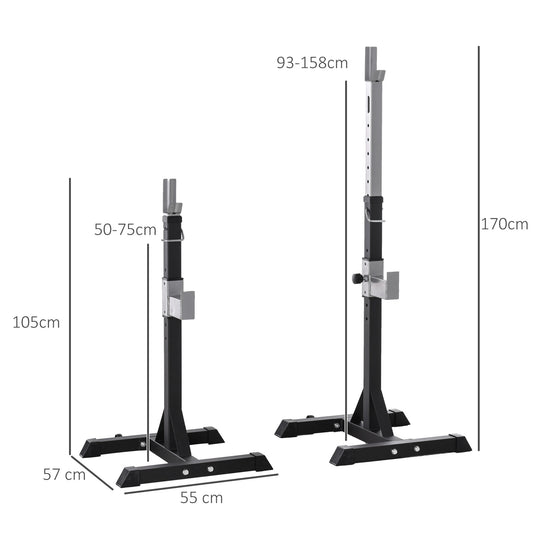 HOMCOM 2 Pairs Adjustable Barbell Squat Rack Portable Stand Weight Lifting Bench Press Home Gym with Wheels, Black