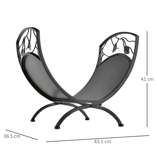 Outsunny Iron Folding Arced Firewood Log Holder with Leaf Scroll Panels Indoor Outdoor Garden Storage Heavy Duty Stacker Black