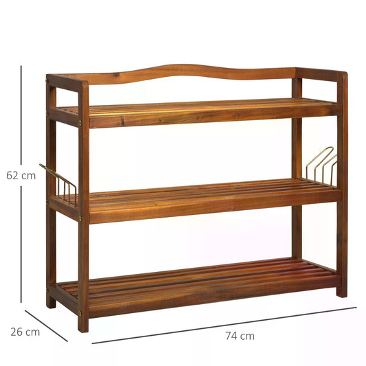 HOMCOM 3-Tier Shoe Rack, Acacia Wooden Shoe Storage Organiser with 2 Hangers, Holds up to 12 Pairs, for Entryway, Living Room, 74 x 26 x 62 cm, Teak