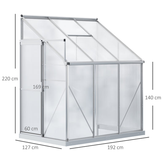 Outsunny Walk-In Greenhouse Lean to Wall Greenhouse Garden Heavy Duty Aluminium Polycarbonate with Roof Vent for Plants, 192 x 127 x 220 cm