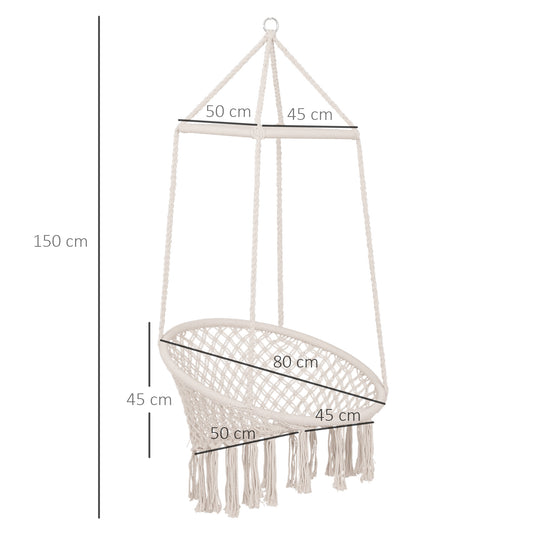 Outsunny Hammock Macrame Swing Chair Hanging Seat Rope Tassels Indoor Outdoor Garden Solid Knitted Woven Net Seat Deck Porch Yard Beige