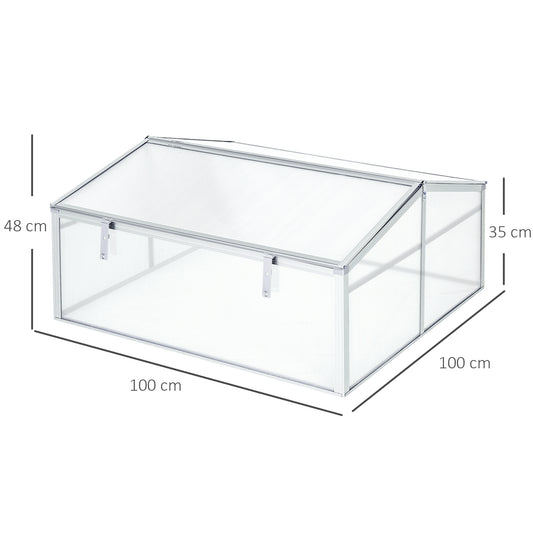 Outsunny Outdoor Greenhouse Polycarbonate Grow House Flower Vegetable Plants Raised Bed Garden Allotment Protector Aluminum Frame 100 x 100 x 48 cm