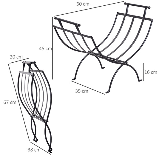 Outsunny Folding Wood Log Holder Fireplace Storage Rack Matte Metal Elevated Indoor Outdoor 45x35cm Black