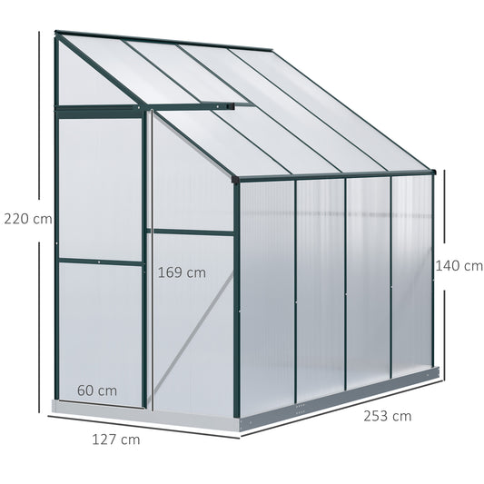 Outsunny Walk-In Greenhouse Lean to Wall Greenhouse Garden Heavy Duty Aluminium Polycarbonate with Roof Vent for Plants, 253 x 127 x 220 cm