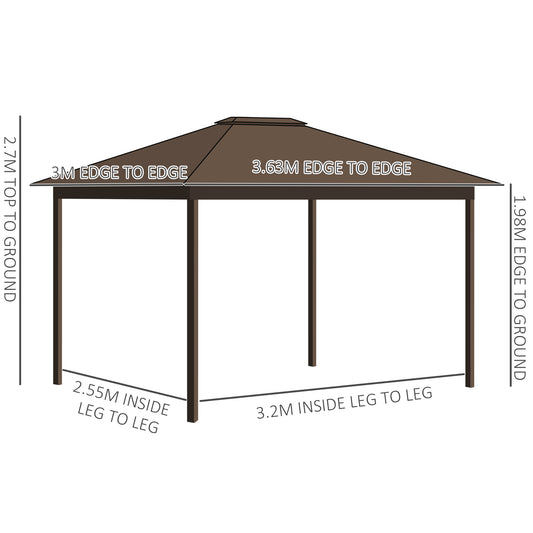 Outsunny 3.6 x 3(m) Outdoor Hardtop Gazebo Metal Roof Patio Gazebo with Aluminum Frame, Mesh Nettings, Curtains, & Roomy Interior Space, Brown