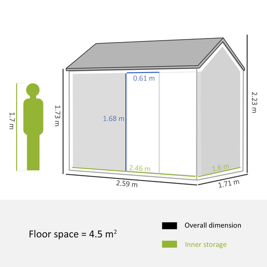 Outsunny 8 x 6 ft Metal Garden Storage Shed Patio Corrugated Roof Tool Storage Box with Double Door Window Sloped Roof, Grey