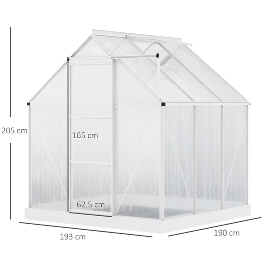 Outsunny 6x6ft Clear Polycarbonate Greenhouse Aluminium Frame Large Walk-In Garden Plants Grow