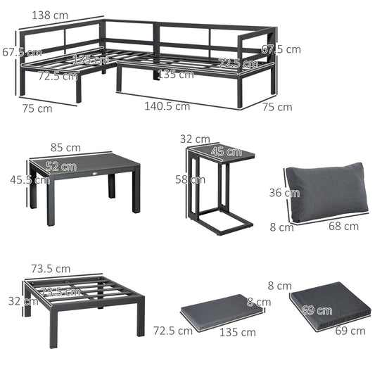 Outsunny 5 Seater L Shape Aluminium Garden Furniture Corner Sofa Set with Coffee Table, Outdoor Conversation Furniture Set with Cushions, Dark Grey