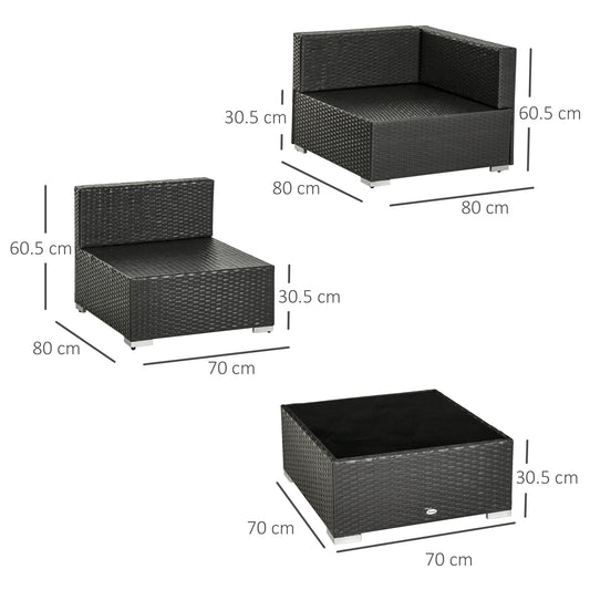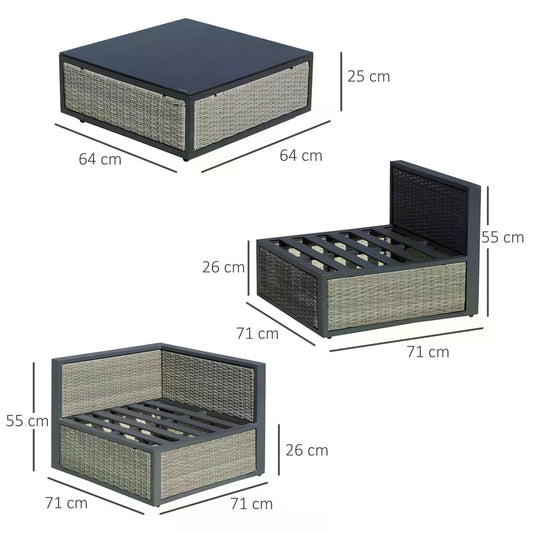 Outsunny 5-Seater Garden PE Rattan Sofa Sofa Set with Coffee Table and Padded Cushion, Grey