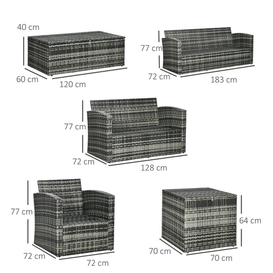 Outsunny 6 Piece Outdoor Rattan Wicker Sofa Set Sectional Patio Conversation Furniture Set with Storage Table & Cushion Mixed Grey