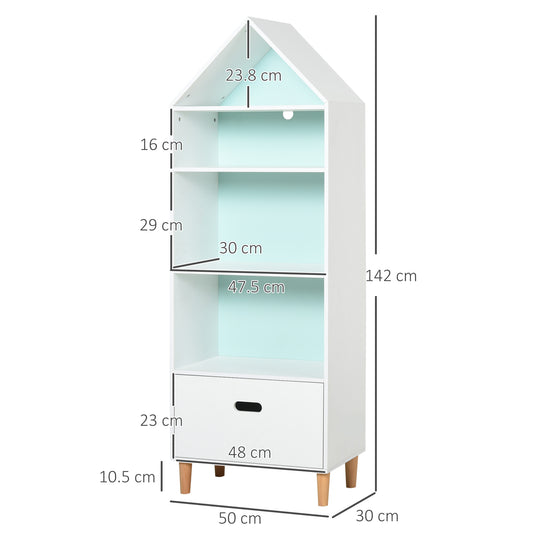HOMCOM Kids MDF 5-Tier Bookshelf with Drawer White/Blue
