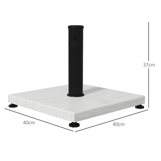 Outsunny 12kg Garden Parasol Base with Adjustable Foot Pad, Concrete Umbrella Stand with Wood Effect Decorative Base and Adjustable Knob, Rectangular Parasol Holder, White