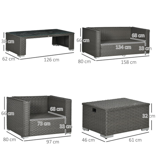 Outsunny 6PC Garden Rattan Sofa Set Outdoor Furniture Patio Table Loveseat Stool Lounging Ottoman Aluminium Frame Wicker Weave Conservatory Grey
