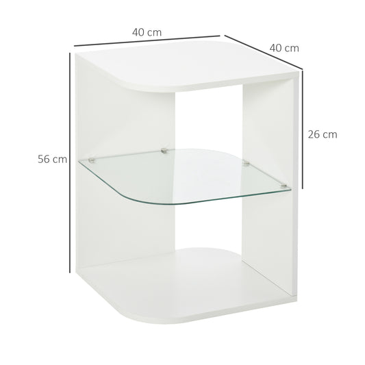 HOMCOM Modern Side Table Three Layer Bedside Table Nightstand with 2 Storage Shelves, for Living room, Bedroom, White