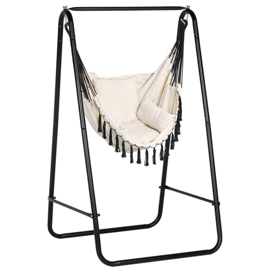 Outsunny Hammock Chair with Stand, Hammock Swing Chair with Cushion, Cream White