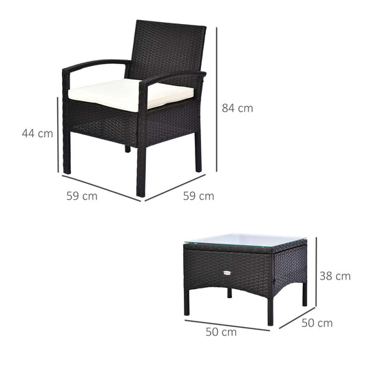 Outsunny Rattan Garden Furniture 2-Seater Sofa Chair Table Bistro Set Wicker Weave Outdoor Patio Conservatory Set Steel-Brown