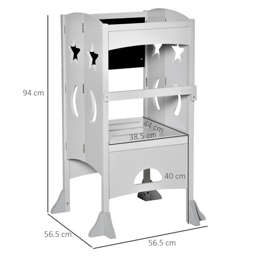 HOMCOM Kids Step Stool Toddler Kitchen Stool with Blackboard Lockable Handrail for Kids Kitchen Counter Grey
