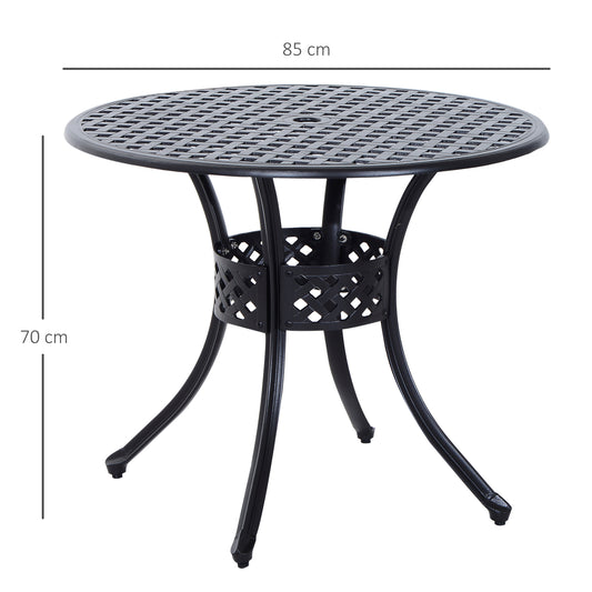 Outsunny 85cm Round Garden Table with Umbrella Hole, Aluminium Grid Motif Outdoor Dining Table for Garden Patio, Black