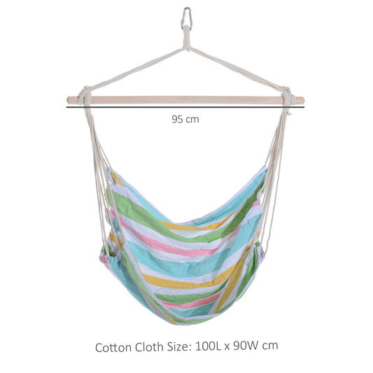 Outsunny Outdoor Hammock Hanging Rope Chair Garden Yard Patio Swing Seat Wooden withHigh Quality Cotton Cloth and Ropes (Green)