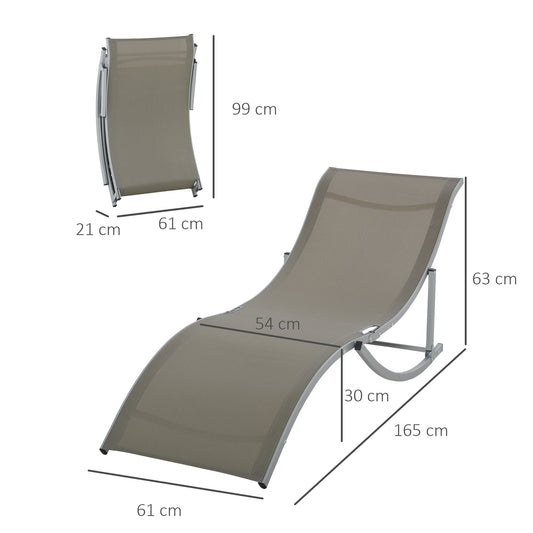 Outsunny Set of 2 S-shaped Foldable Lounge Chair Sun Lounger Reclining Outdoor Chair for Patio Beach Garden Light Grey