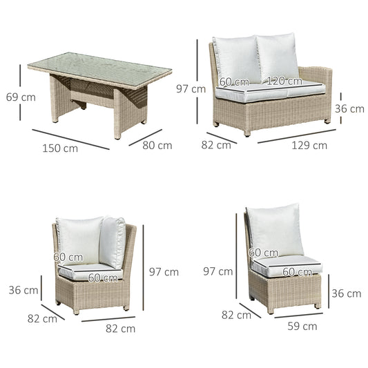 Outsunny 6-Seater Reclining PE Rattan Garden Dining Set Patio Furniture withSofa Chairs Glass Table Cushions Adjustable Feet Stylish Lounge Conversation
