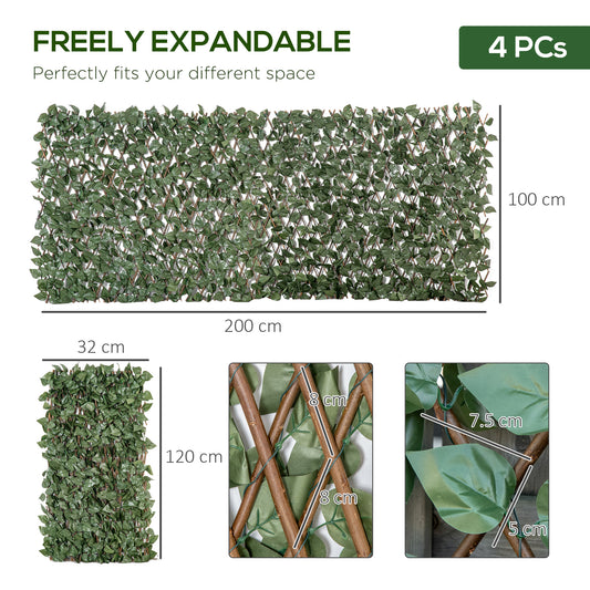 Outsunny 4 Pieces Expanding Trellis Fence, 2m x 1m Artificial Plant Fence, Decorative Trellis Garden Telescopic Hedge Privacy Screen Greenery Walls