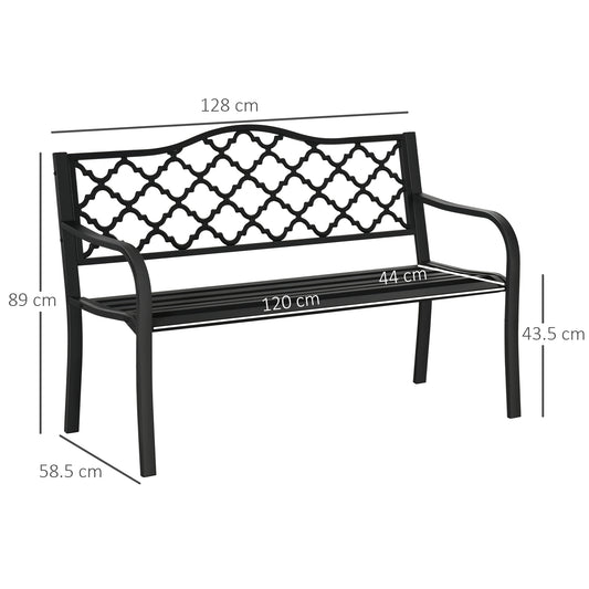 Outsunny 2-Seater Outdoor Garden Bench Cast Iron Antique Park Loveseat Chair with Armrest for Yard, Lawn, Porch, Patio, Steel