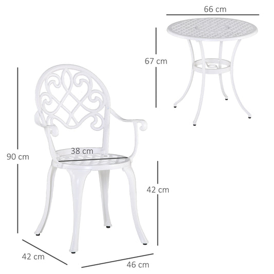 Outsunny 3PCs Garden Table Set Bistro Set Round Table and 2 Chairs for Outdoor Indoor Patio Balcony Aluminium