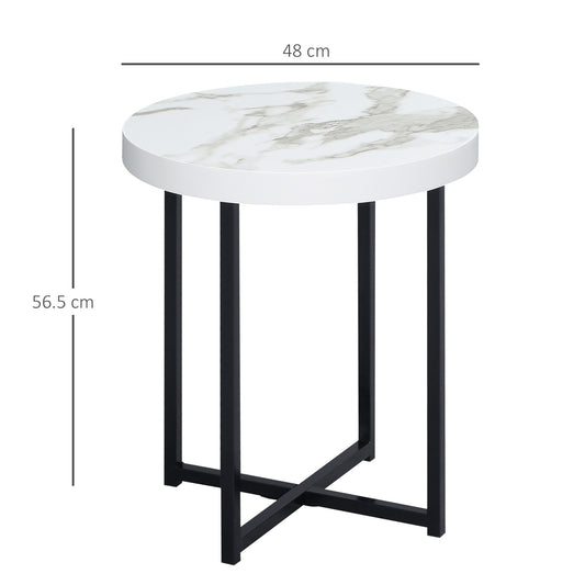 HOMCOM Round Side Table with Metal Legs, Modern End Table Bedside Table for Living Room, Bedroom, White