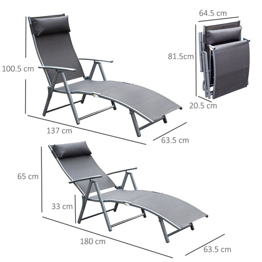Outsunny Texteline Sun Lounger Recliner Chair Patio Foldable Garden 5 Levels Grey